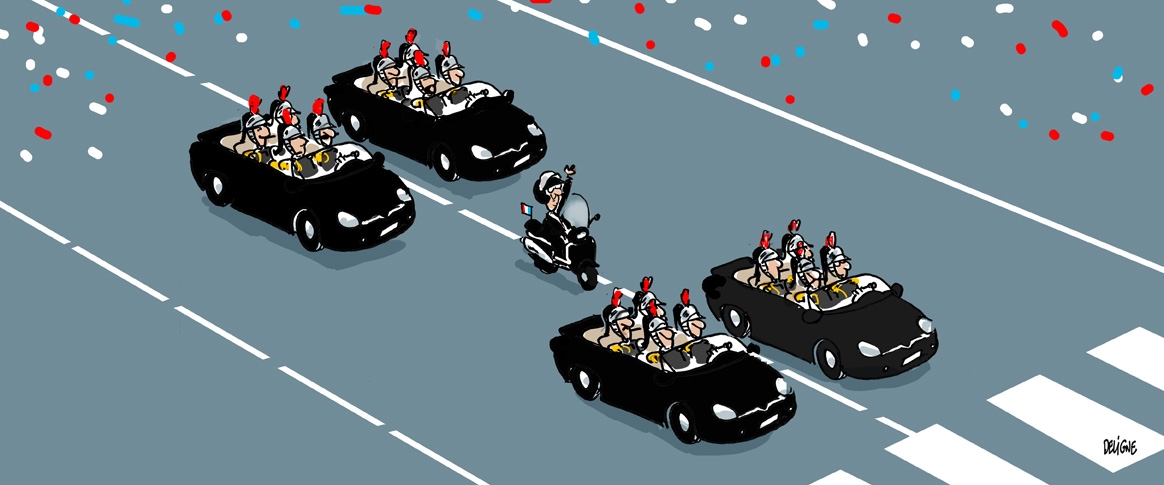 Aujourd’hui, François est devenu président… Avec le stress lié à sa fonction, les crises d’affablite s’accentuent : intervenir ou pas, Brégançon ou la Lanterne, cour d’honneur ou grille du coq, droite ou gauche, Valls ou Montebourg ? (prenez les deux ont susurré ses proches, comme ça, vous n’aurez pas à choisir). Tout est sujet à discussion. Pour son premier sommet européen à Bruxelles, il part en train, mais revient en voiture : ne froisser ni la SNCF ni son chauffeur. Même chose pour son régime. François veut ménager son cuisinier et son diététicien, alors il choisit d’être gros six mois sur douze.